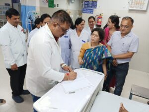 महानिदेशक महोदया द्वारा कार्डियक केयर यूनिट में कार्यरत कार्डियक थोरेसिक सर्जन के दो दिवस पूर्व त्याग पत्र प्रस्तुत किये जाने पर केन्द्र प्रभारी, मैडिट्रिना हॉस्पिटल को तत्काल उक्त चिकित्सकों को तैनात किये जाने के निर्देश दिये गये इसके अतिरिक्त नियमित एनेस्थेटिस्ट की तैनाती के भी निर्देश दिये गये।